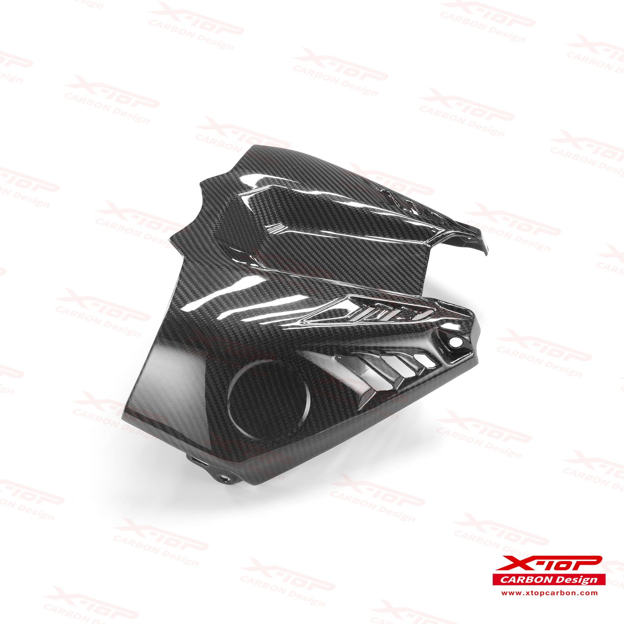 X-TOPのカーボンパーツは、航空産業でも使われるオートクレーブ成形技術を採用し、さらに独自の三層塗装仕上げによって立体感のある質感を生み出しています。