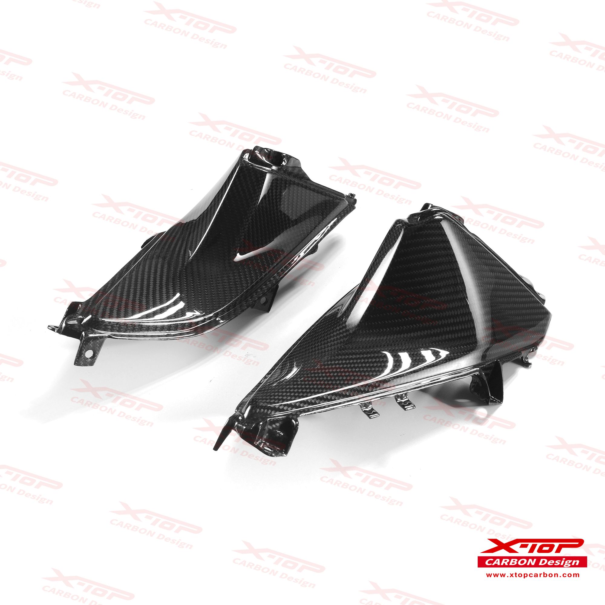 X-TOPのカーボンパーツは、航空産業でも使われるオートクレーブ成形技術を採用し、さらに独自の三層塗装仕上げによって立体感のある質感を生み出しています。