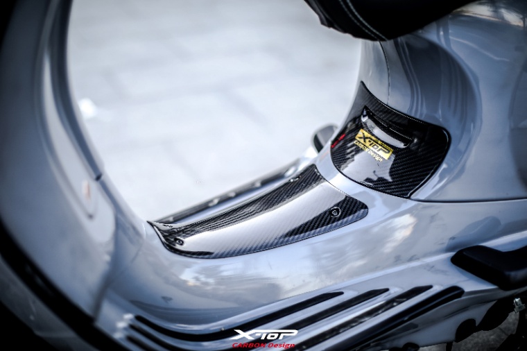 X-TOPのカーボンパーツは、航空産業でも使われるオートクレーブ成形技術を採用し、さらに独自の三層塗装仕上げによって立体感のある質感を生み出しています。