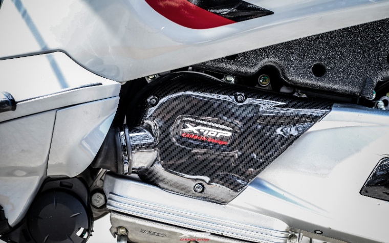 X-TOPのカーボンパーツは、航空産業でも使われるオートクレーブ成形技術を採用し、さらに独自の三層塗装仕上げによって立体感のある質感を生み出しています。